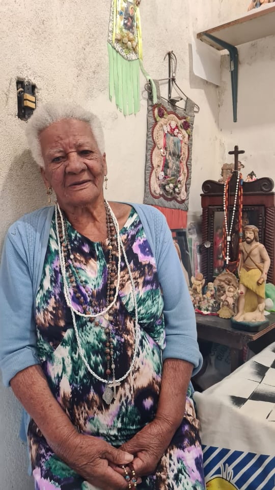 Benzedeira dona Teresa ao lado de seus santos de devoção. São João del-Rei. 29/08/2020. Soraia Geralda Santos.
