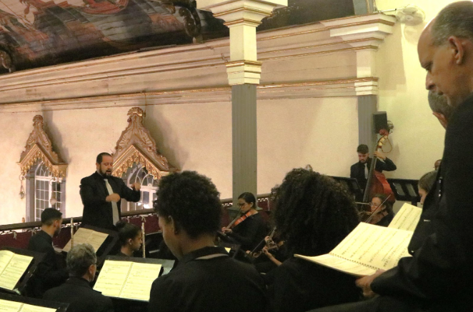 Orquestra Ribeiro Bastos no coro da matriz do Pilar, 06-03-2020. Foto: Danilo Ferretti.