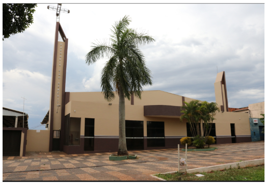 Ao lado do templo há uma passagem que vai dar para a antiga capela e para o salão paroquial, onde são realizados os trabalhos de catequese e de cursos da paróquia.