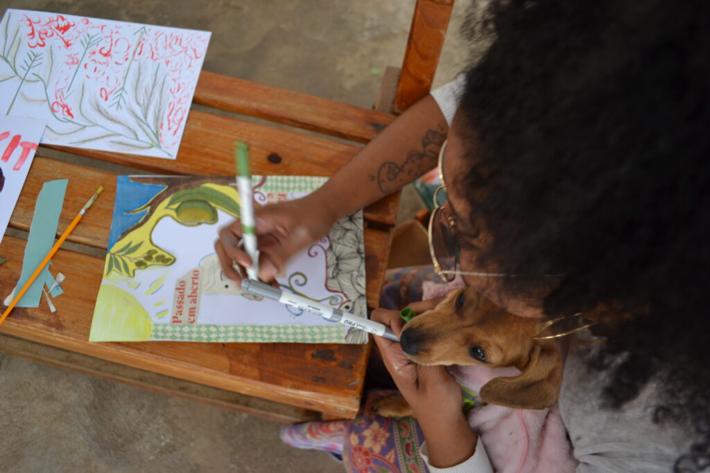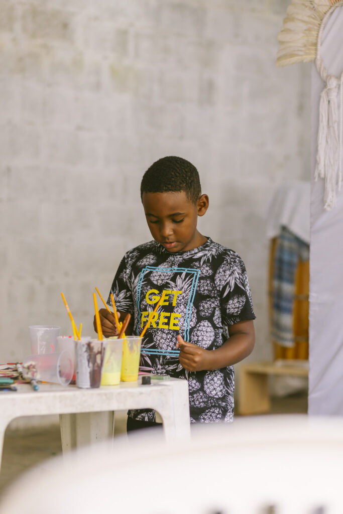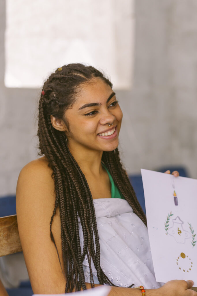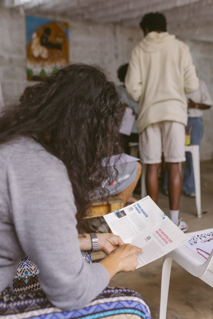 A oficina foi um momento de união e celebração, onde todos puderam contribuir para contar, por meio das pinturas, a trajetória da comunidade. Cada traço e cor escolhidos reforçam a conexão com as raízes ancestrais e o compromisso com um futuro de respeito e fortalecimento cultural.