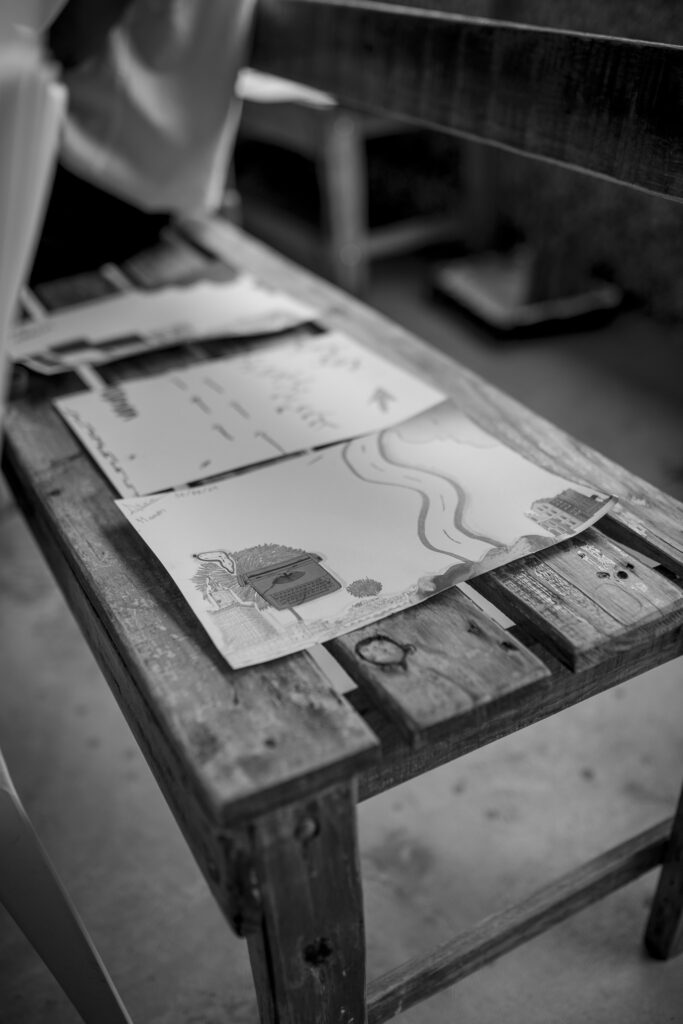 A partir da ideia de que mapas buscam retratar “existência” e a “composição” de um lugar, convidamos a comunidade ao auto-mapeamento. Conversamos sobre as memórias pessoais e coletivas dos integrantes do Terreiro e a relação dessas memórias com os espaços que hoje cada um ocupa. Em sequência, incentivamos a produção de mapas coletivos, como uma espécie de retrato de suas identidades e territórios.