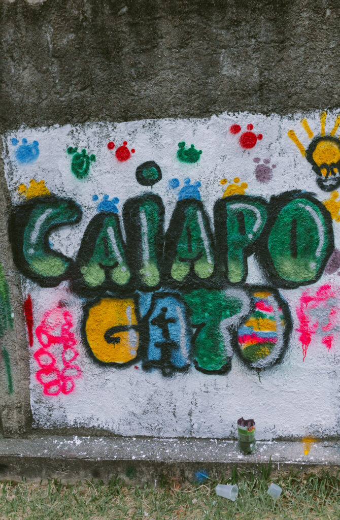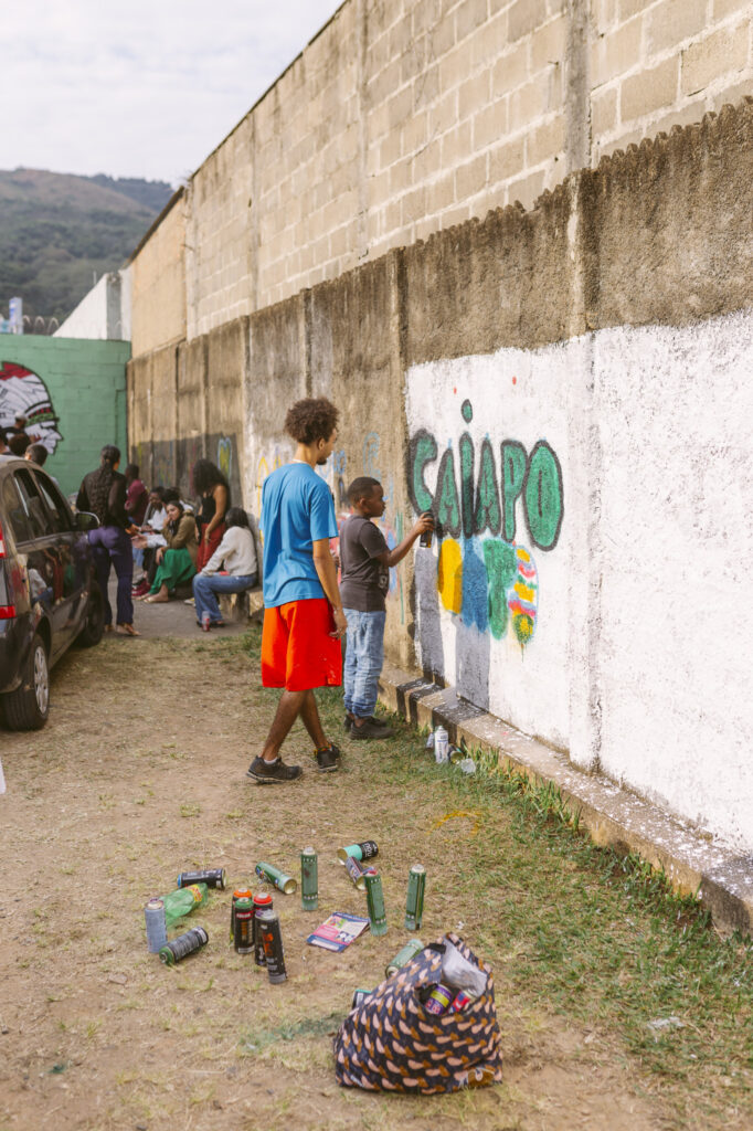 Em junho de 2024, a Associação Afro Ancestral do Terreiro do Caboclo Pedra Branca, em Poços de Caldas, ganhou novas cores e significados com uma oficina cultural de pintura de muros. A ação foi idealizada a partir de conversas com Mãe Ana Maria de Iansã, detentora de saberes ancestrais, que propôs a mobilização coletiva como forma de fortalecer a identidade da comunidade. Os desenhos criados para os muros não são apenas arte, mas uma expressão viva da história, dos valores e dos sonhos daqueles que fazem parte do terreiro. A oficina foi um momento de união e celebração, onde todos puderam contribuir para contar, por meio das pinturas, a trajetória da comunidade. Como dito por Mãe Ana Maria: