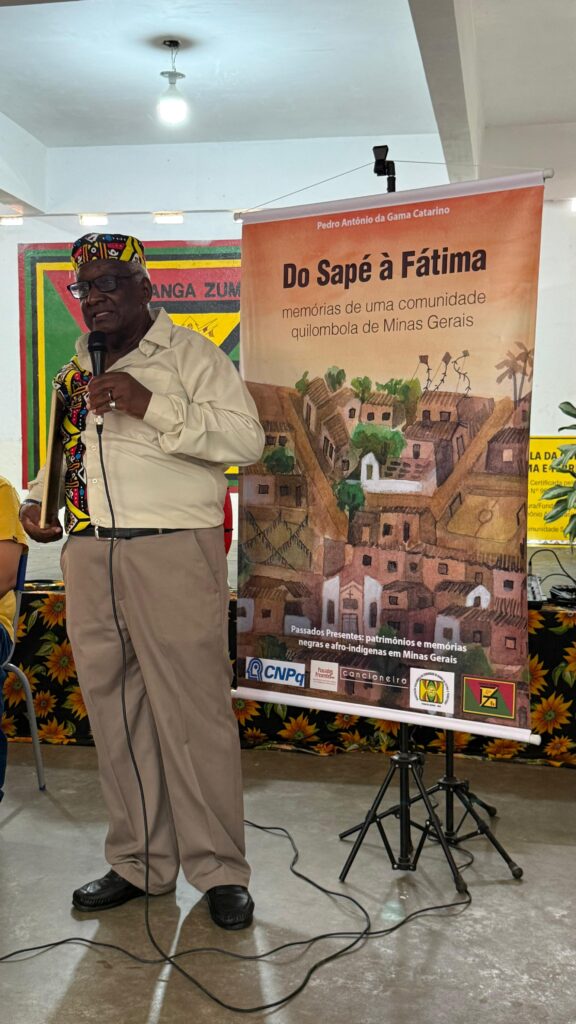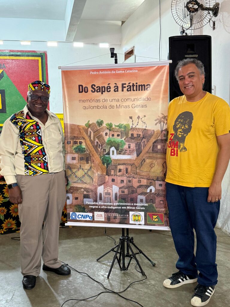 No dia 30 de novembro de 2025, na sede do Grupo Afro Ganga Zumba, ocorreu o lançamento do livro “Do Sapé à Fátima: memórias de uma comunidade quilombola de Minas Gerais”, de autoria do Mestre Pedro Antônio da Gama Catarino, em coautoria com pesquisadores do projeto “Passados Presentes: patrimônios e memórias negras e afro-indígenas de Minas Gerais”, financiado pelo Conselho Nacional de Desenvolvimento Científico e Tecnológico (CNPq).