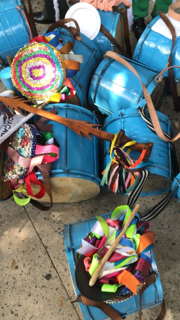 Descrição: Tambores do Terno de Congada Estrela Cadente de Lambari, Aparecida. 2024.