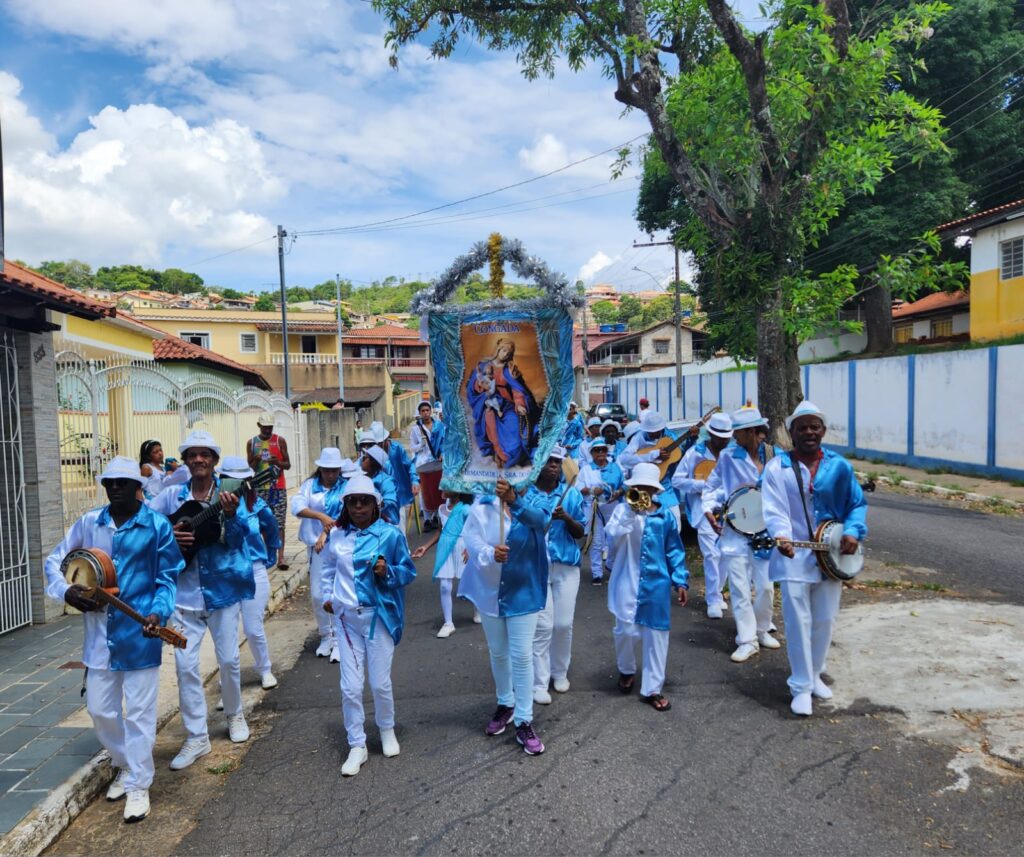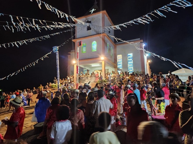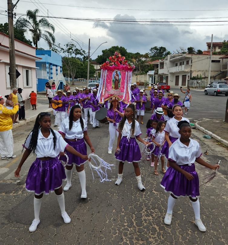 Descrição: Festa do Rosário em Cambuquira, realizada na igreja de Nossa Senhora do Rosário e São Benedito, em outubro de 2023.