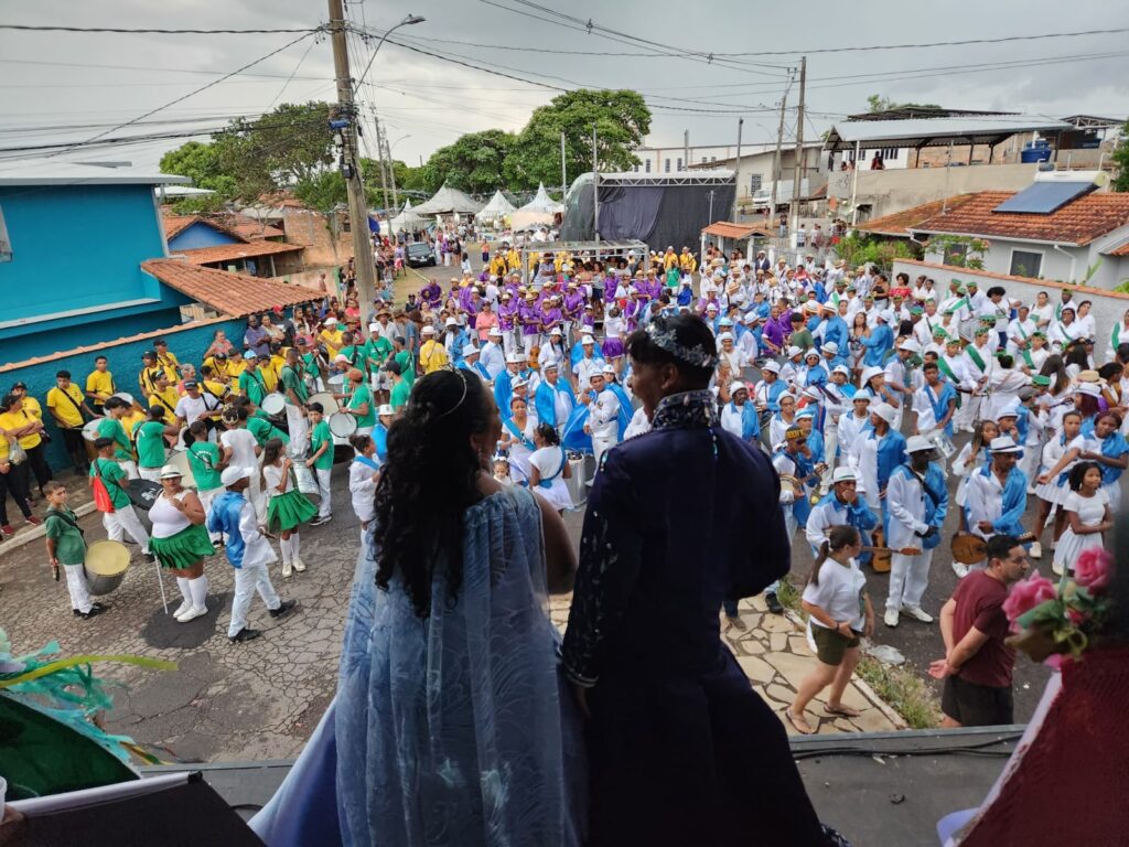 Descrição: Rainha Conga Larissa Gatti e Rei Congo Leandro Barros no Reinado Congo em Cambuquira-MG, com a presença de grupos dos municípios de Campanha, Lambari, Conceição do Rio Verde, além dos ternos cambuquirenses. Novembro de 2023.